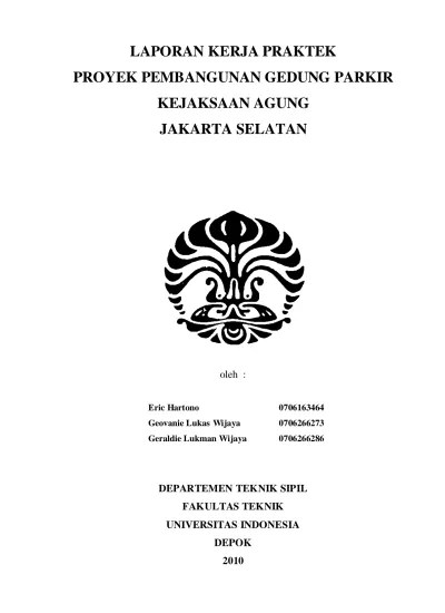 Kerja praktek merupakan kegiatan yang wajib dilaksanakan bagi mahasiswa teknik sipil Diploma teknik sipil fakultas teknik universitas gadjah mada. Contoh laporan kerja praktek teknik sipil bangunan gedung doc. Laporan kerja praktik proyek pembangunan hotel santika bintaro diajukan untuk melengkapi persyaratan kelulusan program sarjana teknik sipil fakultas teknik . Tersebar di berbagai sektor konstruksi bangunan gedung dan sipil (gedung. Laporan kerja praktek pada proyek pembangunan hotel dan apartemen hadiningrat . Doriomas, mt selaku ketua jurusan teknik sipil sttit banda aceh dan selaku pembahas laporan kerja praktek (kp). Denah lokasi proyek pembangunan hotel mm 1.3 fungsi bangunan fungsi utama bangunan . Selaku dekan fakultas teknik universitas bumg karno. Maka kami berharap dapat melaksanakan kerja praktek dalam bidang teknik sipil konsentrasi bangunan gedung di proyek pembangunan gedung asrama . Sehingga penulis dapat menyelesaikan laporan kerja praktek yang berjudul ". Selama dilaksanakannya kerja praktek, penyusun banyak mendapat bantuan dan. Nya penulis dapat menyelesaikan laporan kerja praktek ini dengan baik.